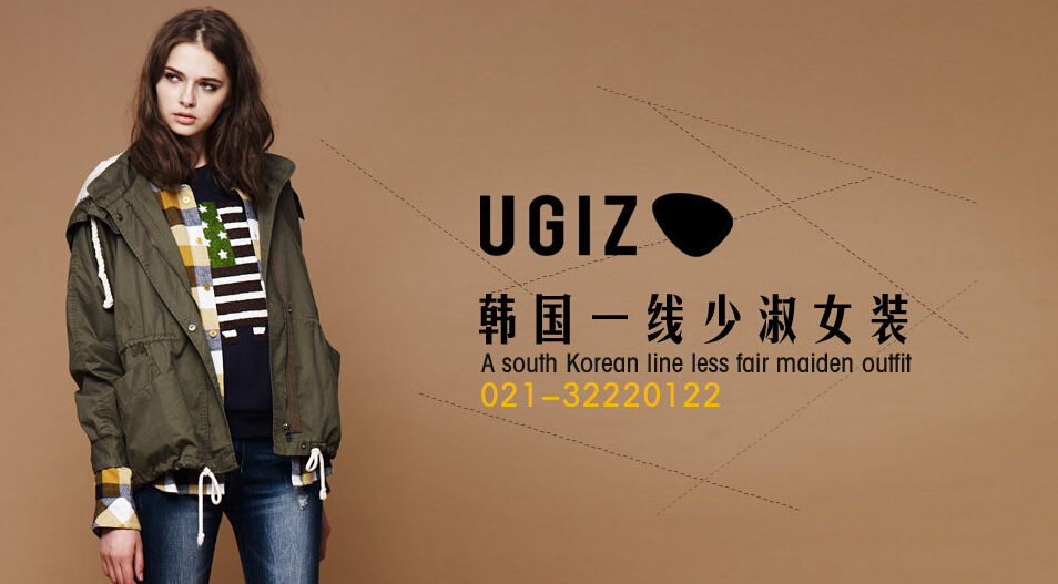 2011年UGIZ女装特别邀请女演员李荷娜为品牌代言人,以休闲为主、强调活力与性感、健康及自信的风格,专为追求个性、自由、充满激情与时尚的年轻人设计,充分彰显活力四射,追求新生事物、探索新发现的年轻一代!表现自由、自信、年轻、感性的UGIZ女装uglz产品设计风格体现韩国本土少女时装风格,时尚,休闲,混搭,强调休闲舒适性。针对年龄阶段为18-35岁,产品价格线:春夏300-1200元,秋冬400-2000元,强势产品系列:棉服,外套,风衣。UGIZ女装主要针对的顾客群为具有强烈个性与充满活力的18-28岁的年轻人,追求舒适,自然的年代,设计方面以个性为主,有自己的独特的品牌风格理念,色彩鲜明,受到年轻人的推崇。UGIZ女装充满个性色彩的韩国休闲品牌U.G.I.Z,以特独的时尚美学、前卫的表现力,演绎现代年青不被拘束的自由个性,冬季U.G.I.Z的英伦格子时尚、军装细节、民族特点以及炫亮色彩,让都会男女享受U.G.I.Z别具一格的出位风采。UGIZ是韩国经典的休闲品牌之一,与D-pulse、CRUX属于同一家公司。UGIZ做工精致,质量属于高档。该品牌由神话成员eric于2006年开始代言(2006-2009),在韩国大学生群体中人气较高。品牌特色特色充满个性色彩的韩国休闲品牌U.G.I.Z,以特独的时尚美学、前卫的表现力以及个性化层叠配搭手法,演绎现代年青不被拘束的自由个性,让都会男女享受U.G.I.Z别具一格的出位风采。设计风格--充满激情,活力四射,追求新生事物,探索新的发现--StreetVintageCasual专为追求自由与时尚的年轻人设计--以休闲性感为主、强调活力与性感、追求健康及自信的风格 [详细介绍]